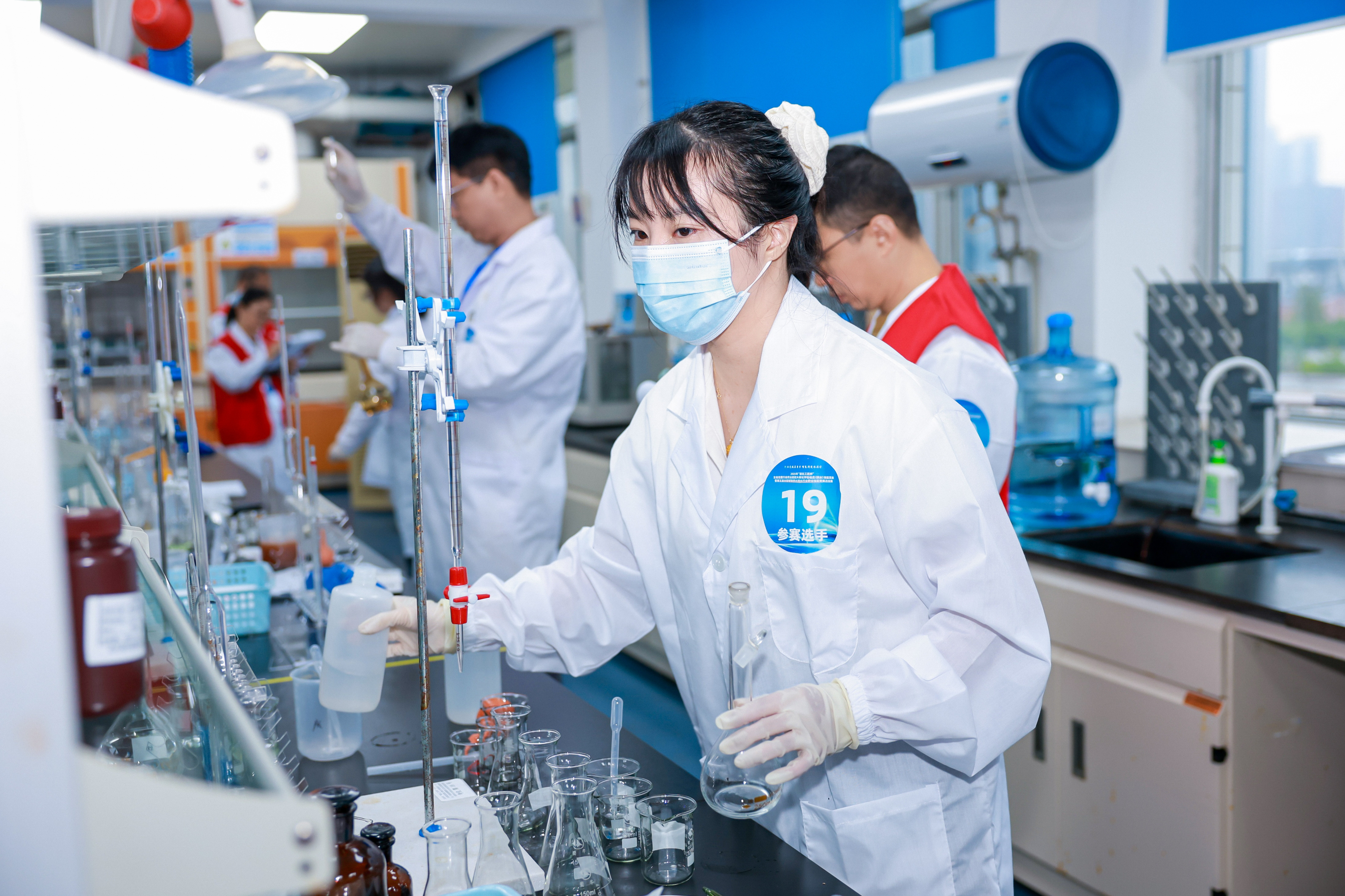 穩(wěn)定發(fā)揮,闖入決賽。競賽采用“理論筆試+實操考核”的雙模塊淘汰賽制,難度高、專業(yè)性強(qiáng)。理論考試涵蓋水化學(xué)基礎(chǔ)、水質(zhì)標(biāo)準(zhǔn)、檢驗方法及安全生產(chǎn)等核心知識;實操環(huán)節(jié)則更具挑戰(zhàn)性,要求選手在150分鐘內(nèi)不間斷完成“水樣氨氮測定”“水樣總硬度測定”等關(guān)鍵項目的盲樣考核,對操作的規(guī)范性、數(shù)據(jù)的精準(zhǔn)度及臨場心理素質(zhì)均是嚴(yán)峻考驗。在強(qiáng)手如林的賽場中,公司2名化驗員沉著冷靜、發(fā)揮出色,從100余名參賽者中脫穎而出,成功晉級決賽,并取得優(yōu)異成績。
